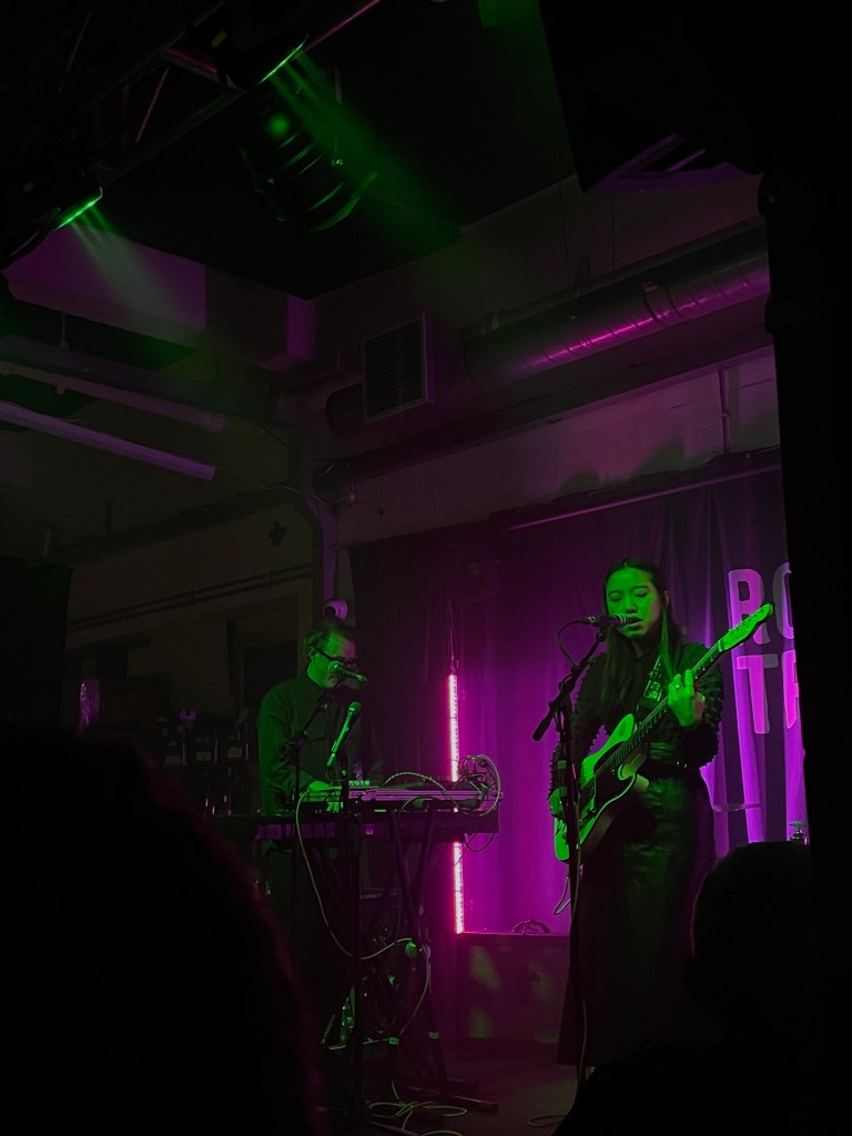 We arrive a little later than planned (thanks, TFL), and straight to the middle of second act mui zyu‘s set where we get a glimpse of her. The British Hong Kong artist (real name Eva Liu) blends genres with surrealistic strings, tape-mangled drum machines and traditional Chinese instruments. Her use of sugary pop vocals paired with existential, dark beats gives shivers down our spine as my mind wanders to sonic landscapes. She masters something rare, and I realize this is an artist I need to look further into.