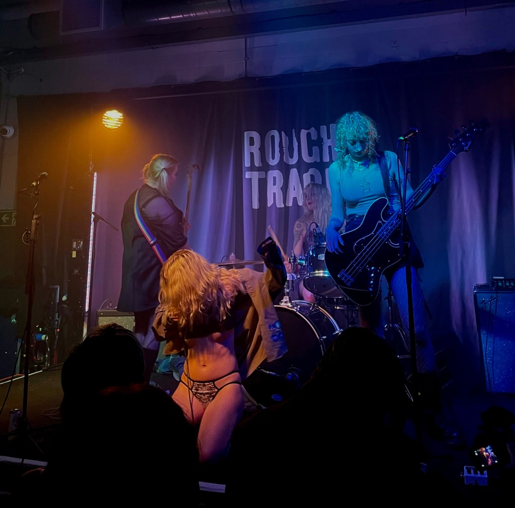 The welcoming and friendly atmosphere feels safe, and for the first time in my life, I experience a mosh pit dominated by women. People are holding hands and forming a ring. It reminds me that I really need to go to more female-focused band nights. Other standout tracks are ‘Kitty Kitty’, a song about catcalling. The combination of the hardcore punk guitar and bass, with the crowd yelling a high-pitched “miaow miaow” feels radically innovative.